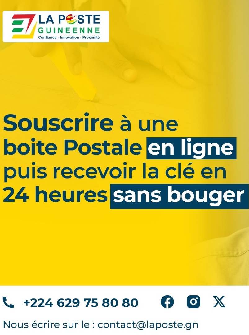 "La Poste Guinéenne à votre service, en tout temps et en tout lieu".